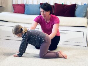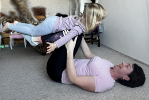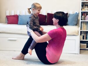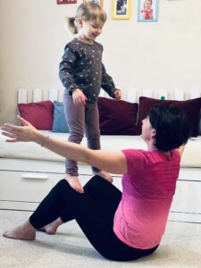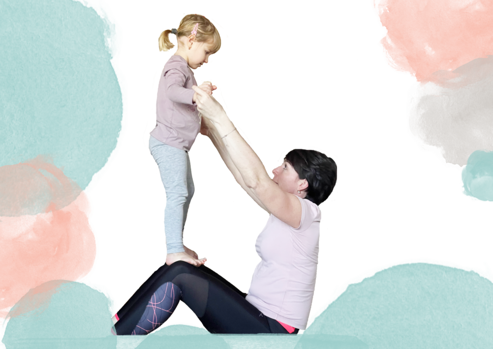 Vždycky jsem obdivně koukala na videa, kde maminky, někdy tatínci cvičí s dětmi různá zpevňovací cvičení a děti u nich opravdu vydrží. Je mi jasné, že je to věc disciplíny, ale moje děti se mnou doma nikdy cvičit nechtěly. Chvilku vydržely, když jsem cvičila já sama, ale pak stejně odběhly. Na svých lekcí zažívám občas to samé. Vymyslím, zpevňovací část lekce a děti vydrží tak 2 cviky a pak odběhnou 🙂 prostě jim chybí akce. Co je ale vždycky baví, je cvičení s rodičem, po kterém různě šplhají, tlačí ho a nechávají se zvedat a různě točit. Stejně tak to měly moje dcery doma. „Blbnout“ se mnou vydržely hodně dlouho. Maminky mi na lekcích mezi řečí vlastně potvrzovaly to samé. Začala jsem tedy pátrat, co můžu všechno s dětmi zkoušet. Se svými dětmi jsem se toho vůbec nebála od malička a tak jsem do toho šla.