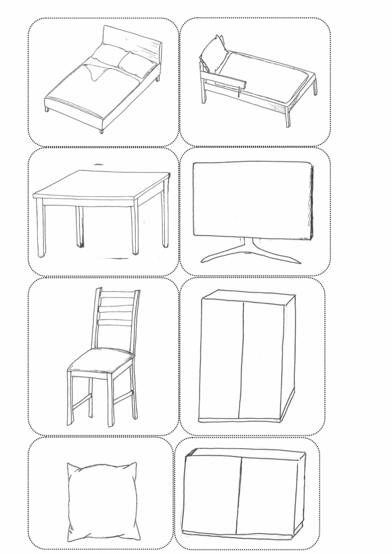 - Najdete zde základní obrázky vybavení toho, co máte určitě doma - pro starší děti můžete seznam klidně rozšířit na další vybavení - pokud neumíte kreslit, klidně je vyfoťte