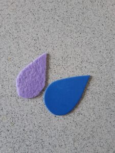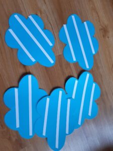 Pomůcky – zalaminovaný mrak, polepený oboustrannou páskou a nastříhané kapičky z filcu.