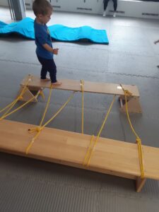 Vraceli jsme muchomůrce její bílé šupinky – cestou jsme procházeli přes pavučiny, které nám tam připravili lesní pavouci. Nechte děti vybrat, jak chtějí překážku překonat – mohou jít po lavičce, přes švihadla nebo podlézat.