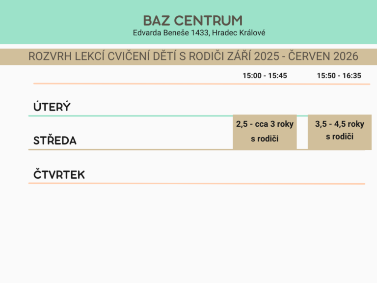 KURZY CVIČENÍ BATOLAT S RODIČI A PŘEDŠKOLÁKŮ V HRADCI KRÁLOVÉ - ROZVRH LEKCÍ 2025/2026