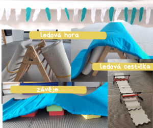 ledovou horu – závěje – ledovou jeskyni a po ledové cestičce